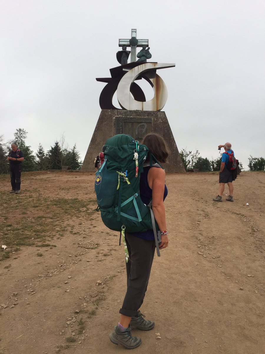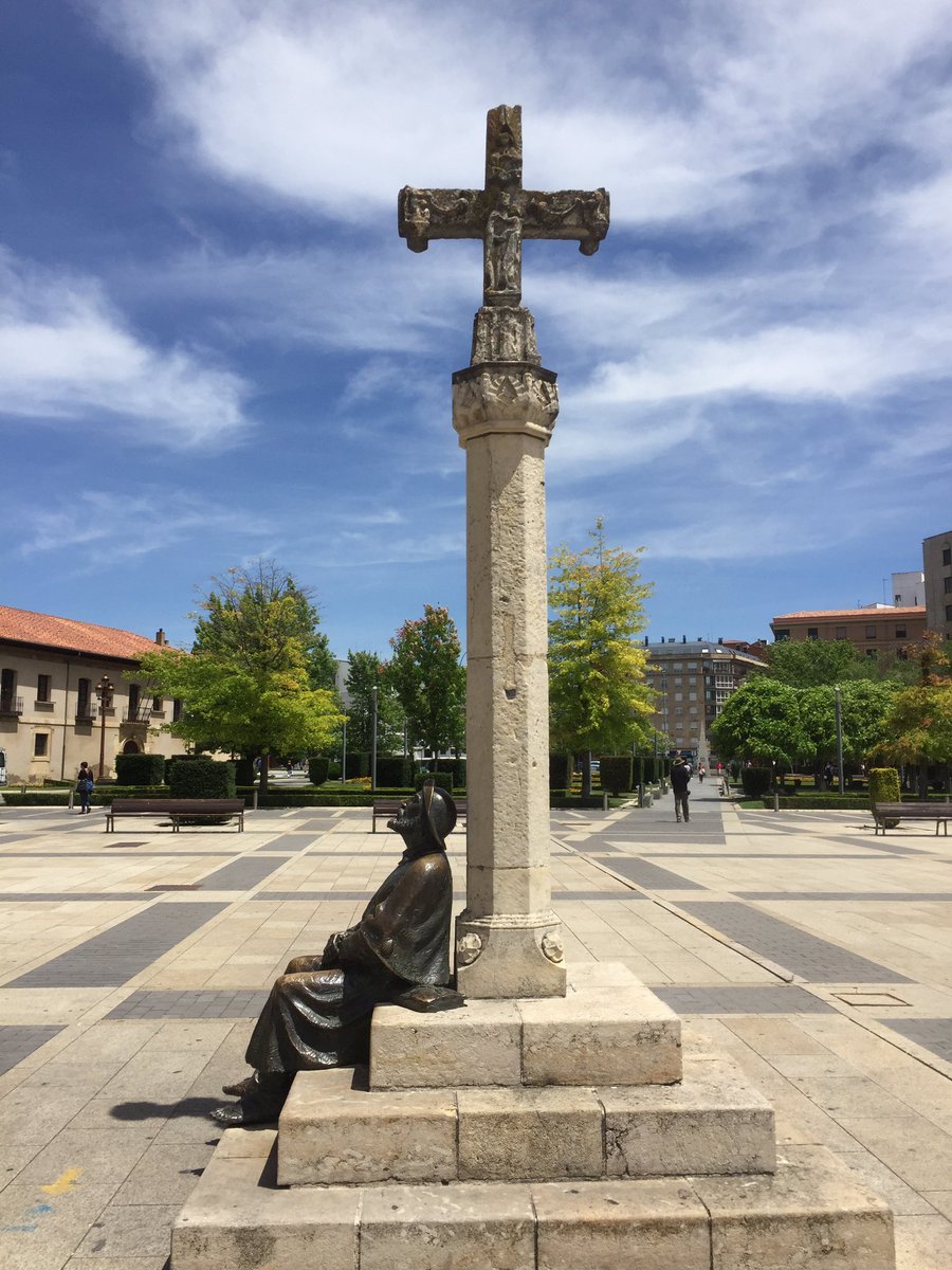 by Juliet Cromwell Life size sculpture of a pilgrim in Plaza San Marcos