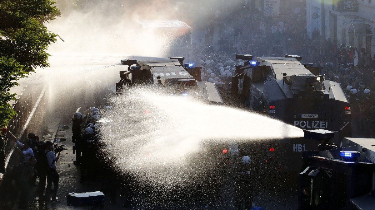 Police are using water cannons to clear protesters at the G20 Summit in Germany